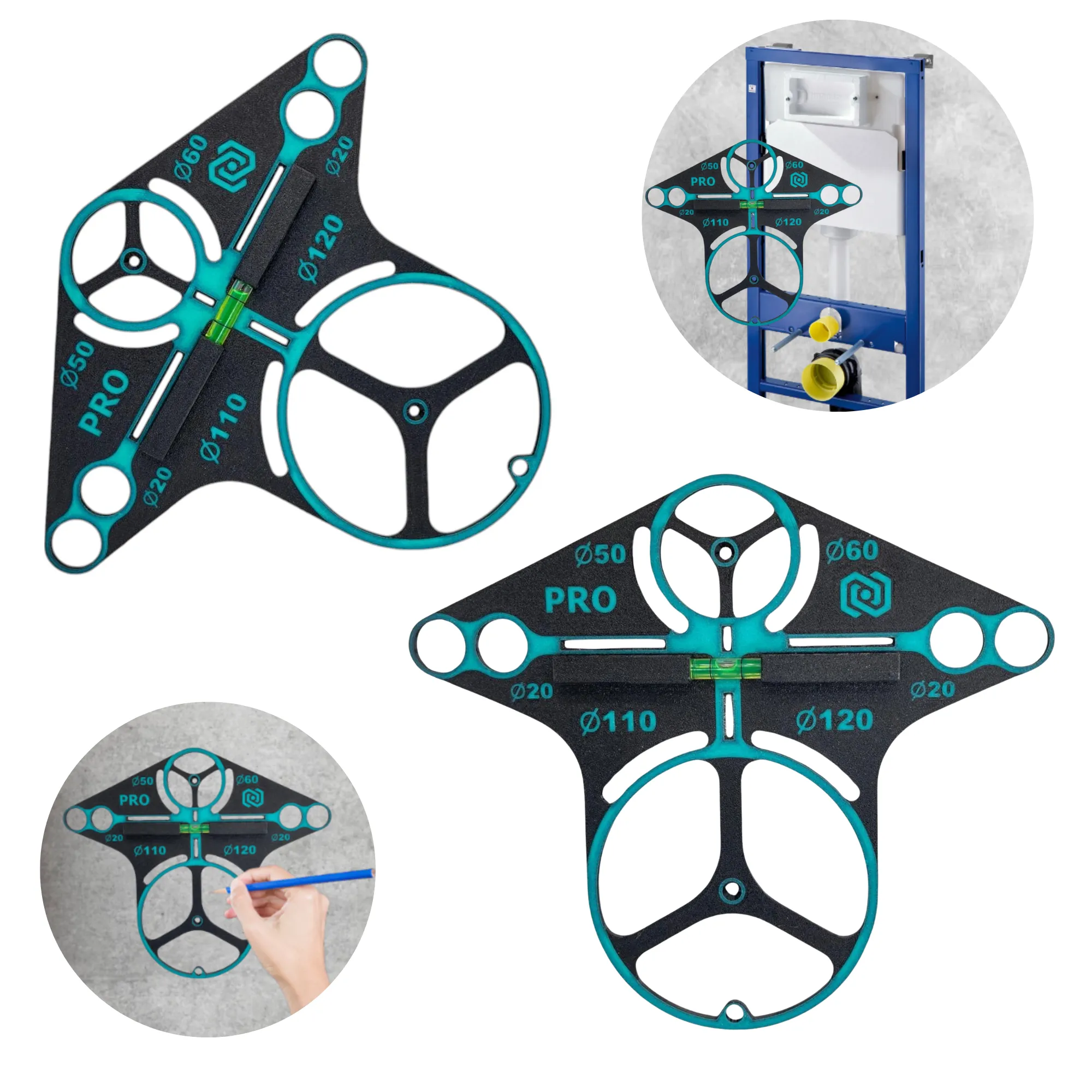 Szablon wzornik do poziomowania krzywek 150 mm | mocowanie baterii | Czarny