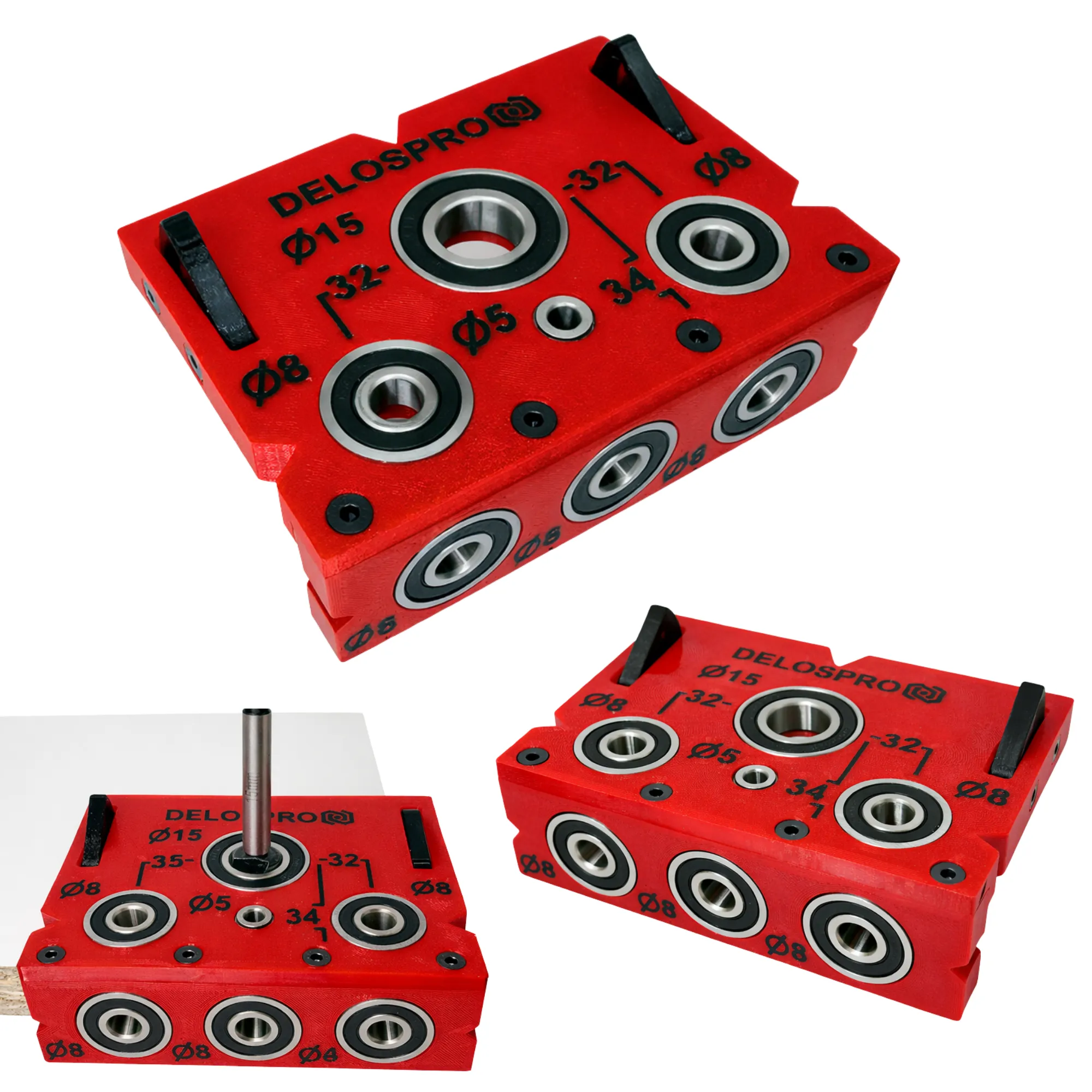 Profesjonalny szablon do kołków meblowych i mimośrodów 18 mm – Przyrząd stolarski | Czerwony