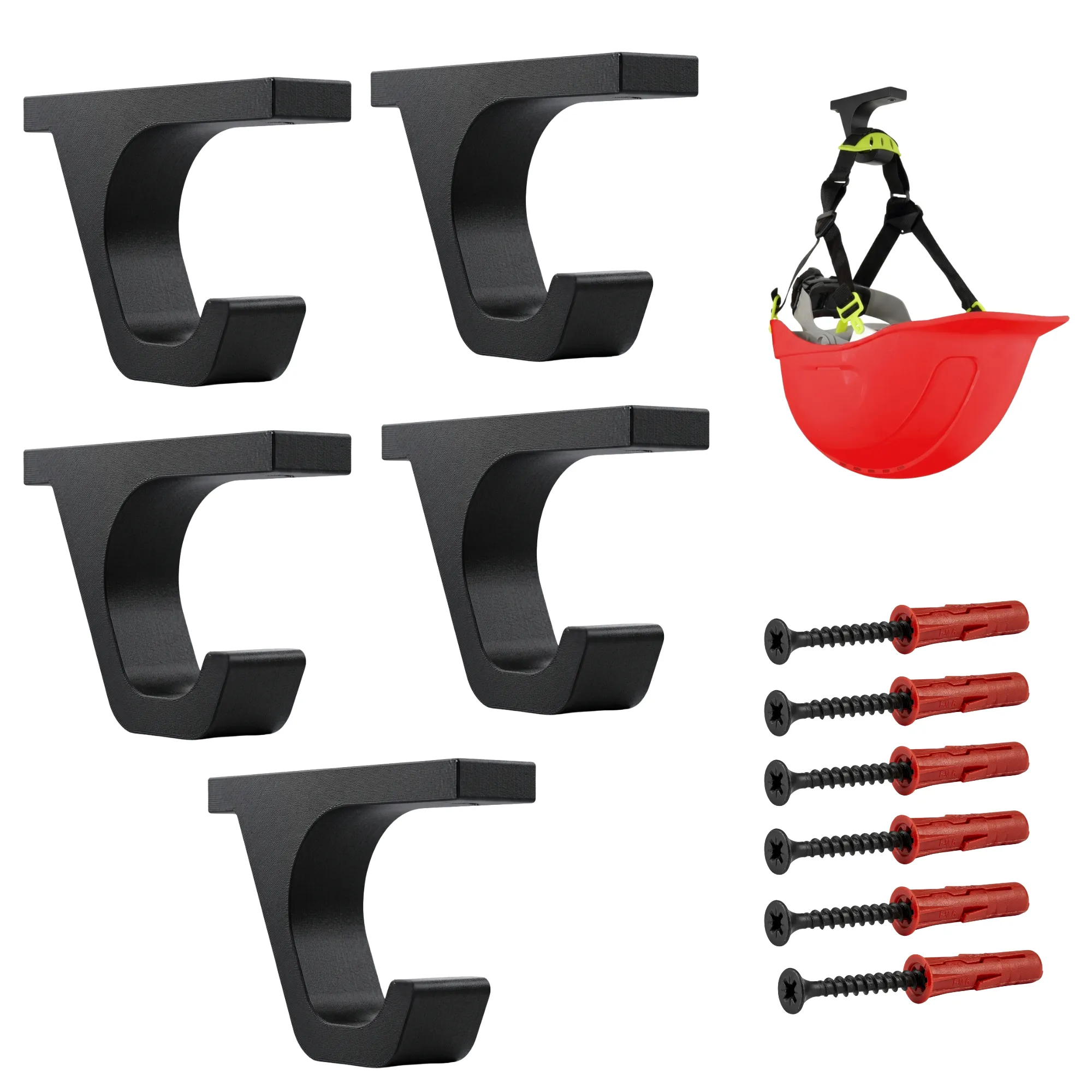 Wieszak na kaski BHP to praktyczne rozwiązanie do wygodnego i uporządkowanego przechowywania sprzętu ochronnego w firmie, warsztacie, garażu lub na budowie. Zestaw zawiera 5 czarnych uchwytów ściennych, dzięki którym można stworzyć przejrzyste miejsce do odkładania kasków ochronnych dla pracowników.