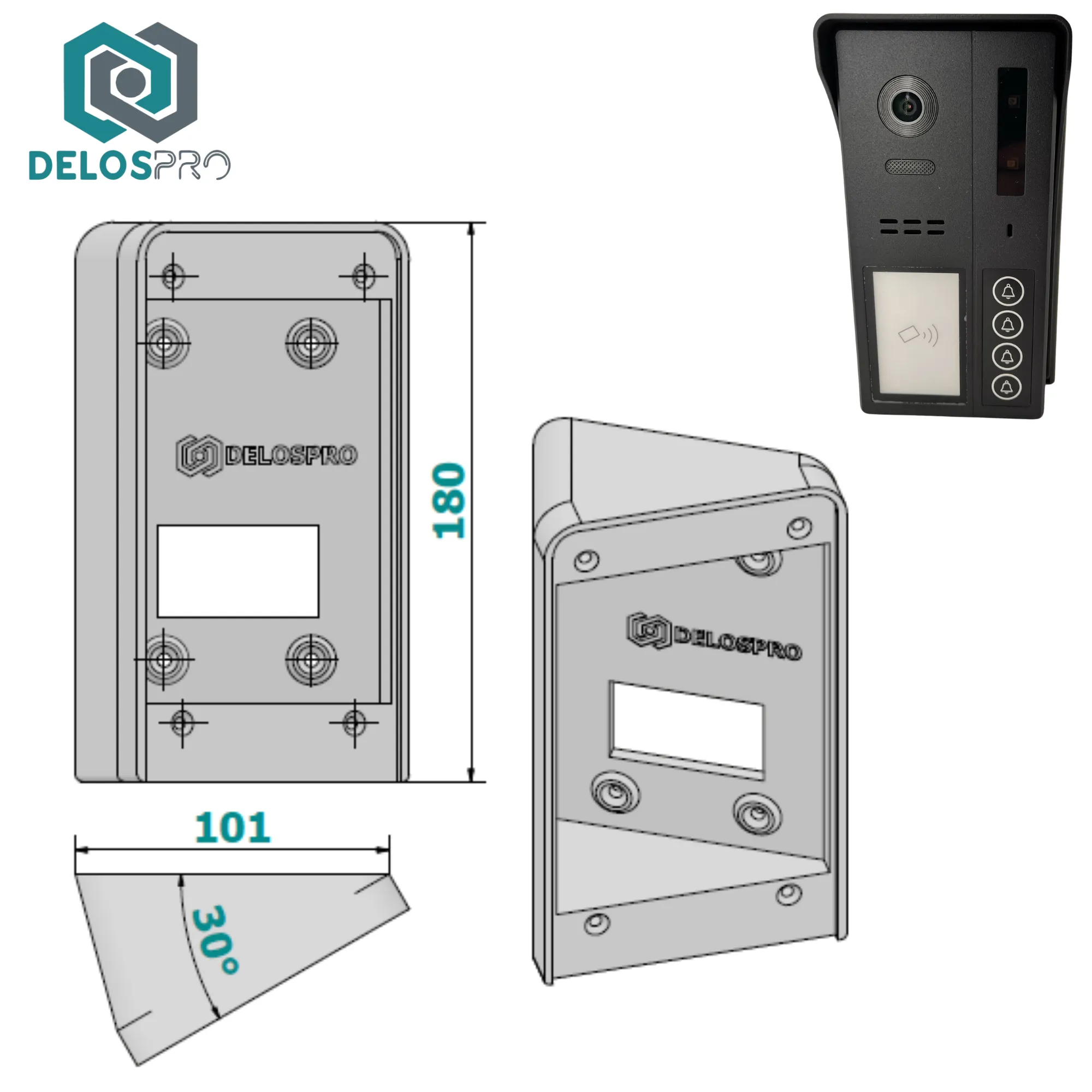 - kąt montażu panelu wideodomofonu – 30°