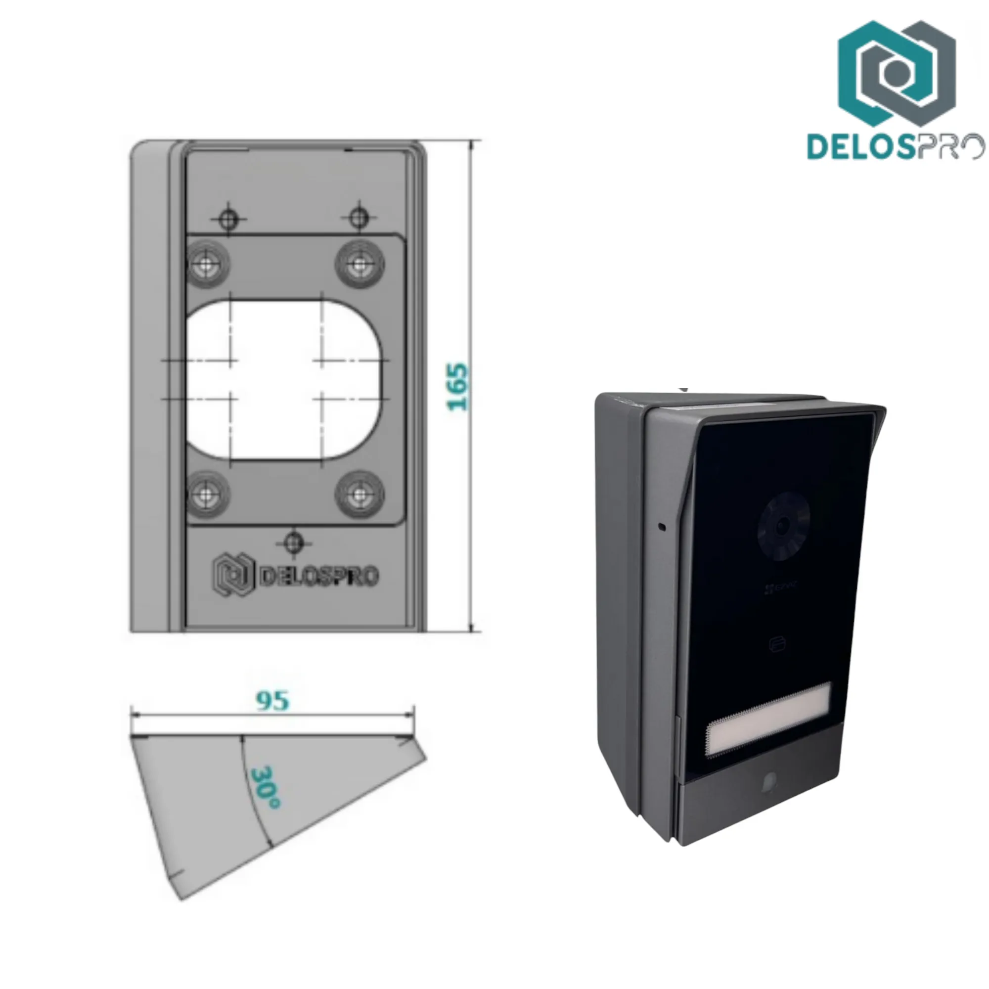 Adapter kątowy lewy szary do wideodomofonu EZVIZ CP7 to uchwyt montażowy umożliwiający instalację panelu pod kątem 30°. Dzięki temu kamera wideodomofonu skierowana jest bezpośrednio w stronę osoby stojącej przed drzwiami wejściowymi.
