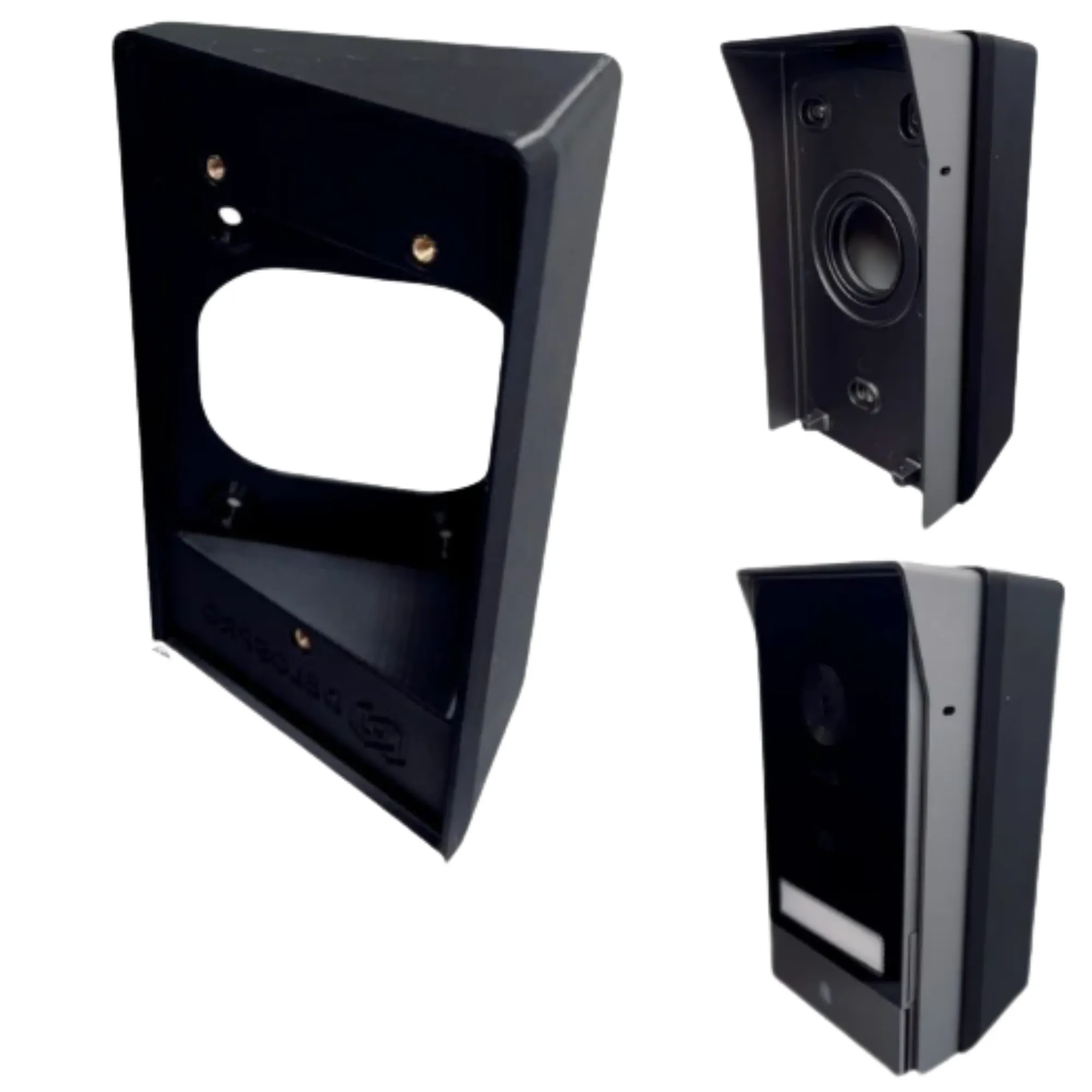 Adapter kątowy prawy czarny do wideodomofonu EZVIZ HP7 montowany jest pomiędzy ścianą a panelem urządzenia. Dzięki temu kamera zostaje skierowana w stronę wejścia do budynku, co poprawia jakość obrazu i funkcjonalność systemu wideodomofonowego.