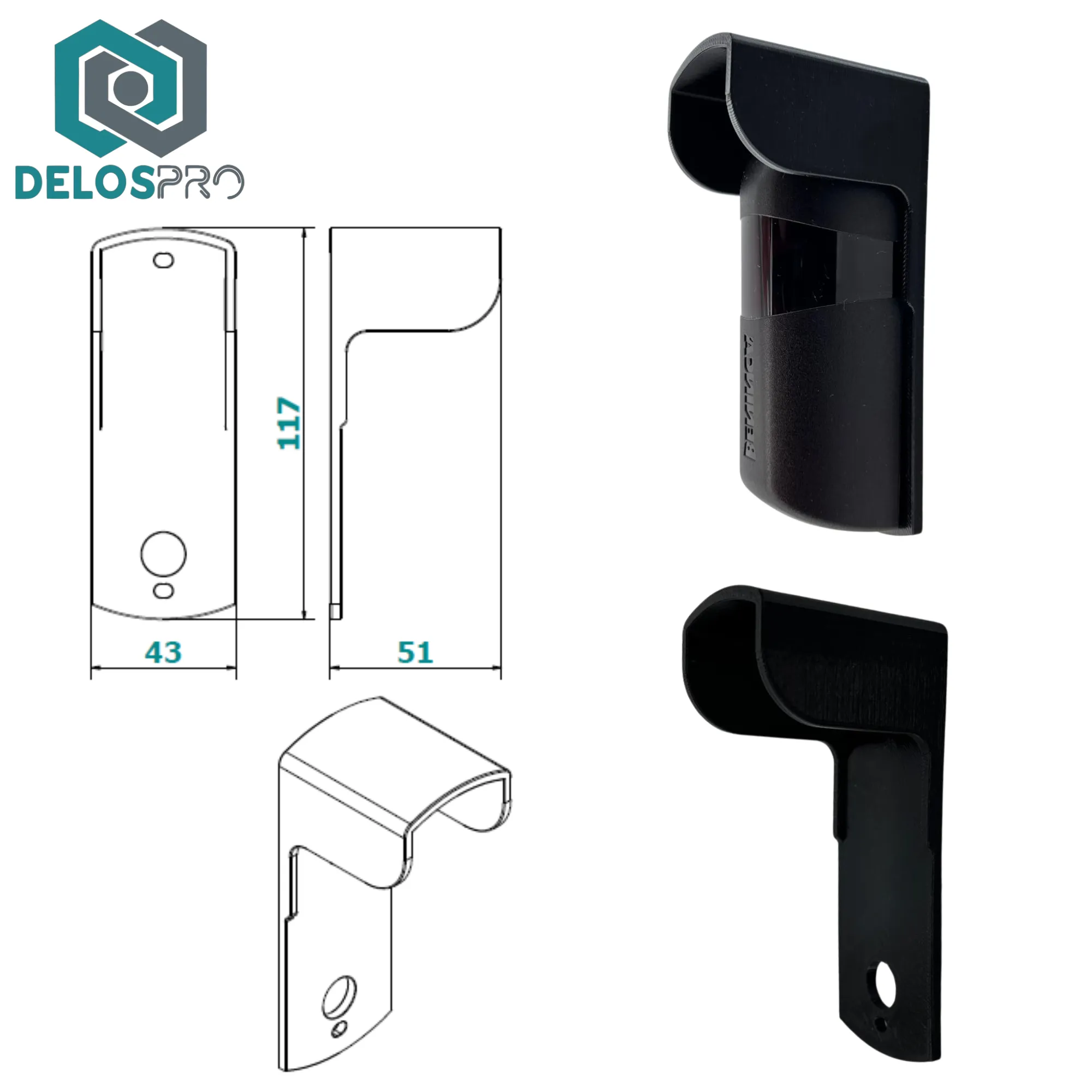 Produkt wykonany jest w technologii druku 3D z trwałego materiału PETG, odpornego na warunki atmosferyczne. Czarny kolor pasuje do nowoczesnych ogrodzeń, słupków i osprzętu automatyki bramowej.