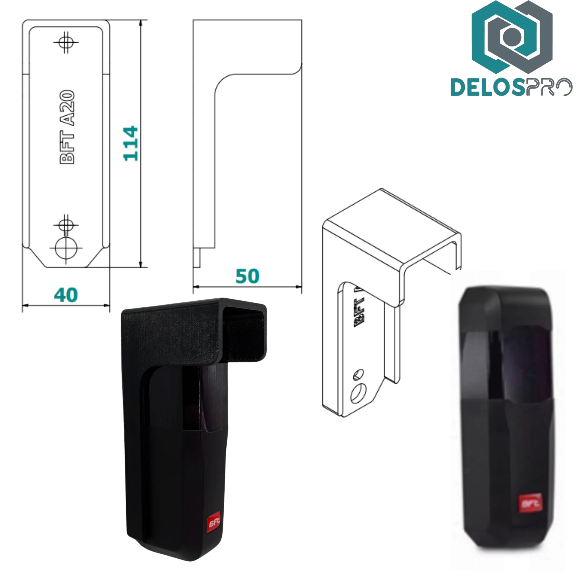 Osłona do fotokomórki BFT COMPACTA A20 wykonana jest w technologii druku 3D z trwałego materiału PETG, odpornego na warunki atmosferyczne. Czarny kolor pasuje do nowoczesnych ogrodzeń, słupków i osprzętu automatyki bramowej.