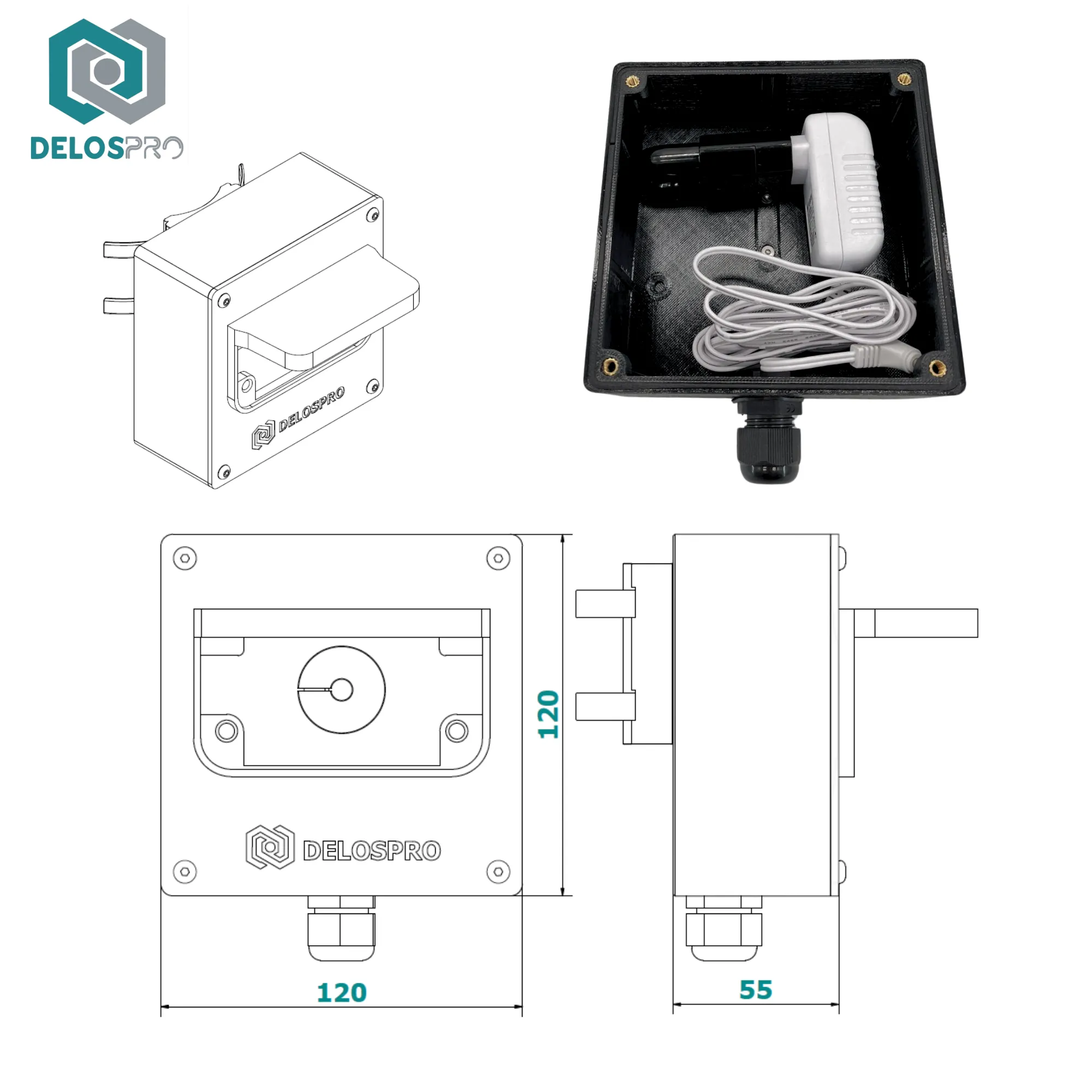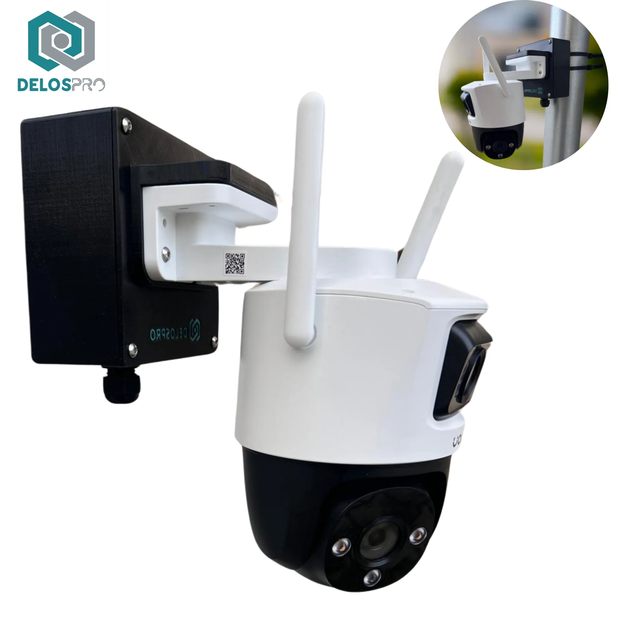 Czarna puszka montażowa IMOU Cruiser Dual na słup – miejsce na zasilacz | DELOSPRO