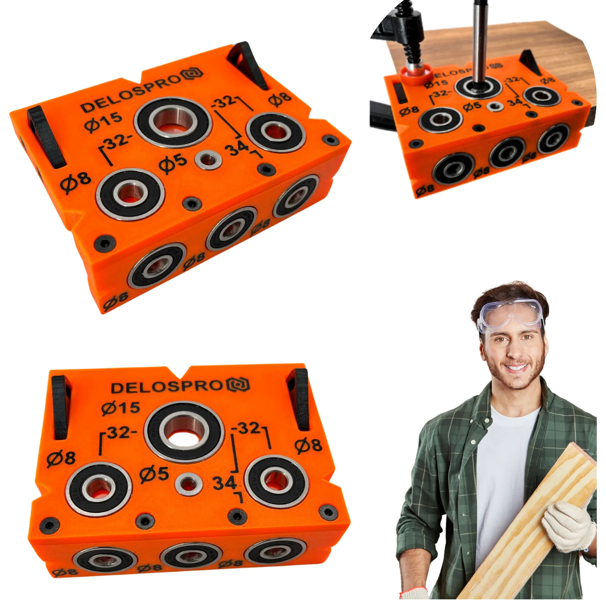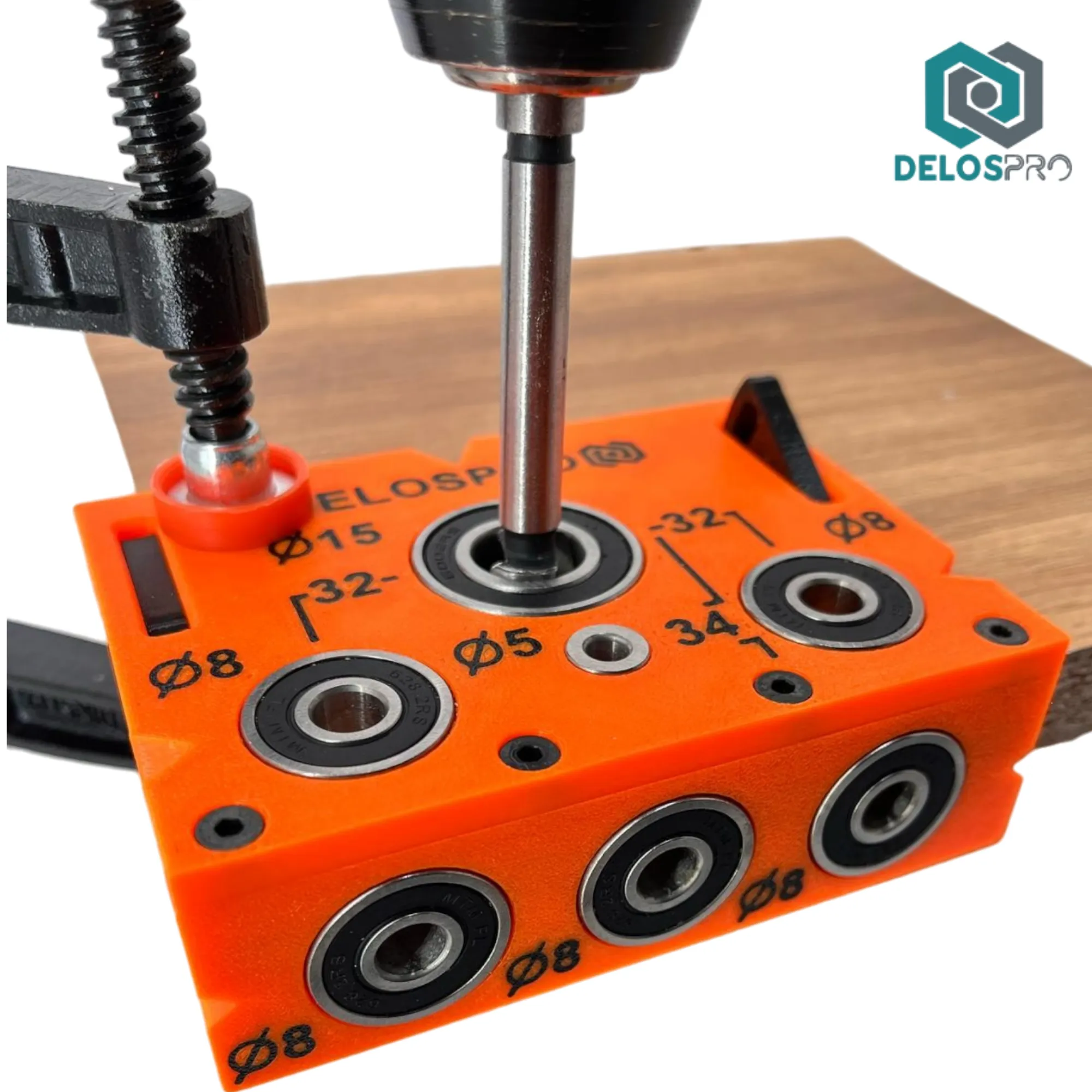 Szablon do wiercenia pod mimośrody i kołki 18 mm – Dokładna prowadnica | Pomarańczowy