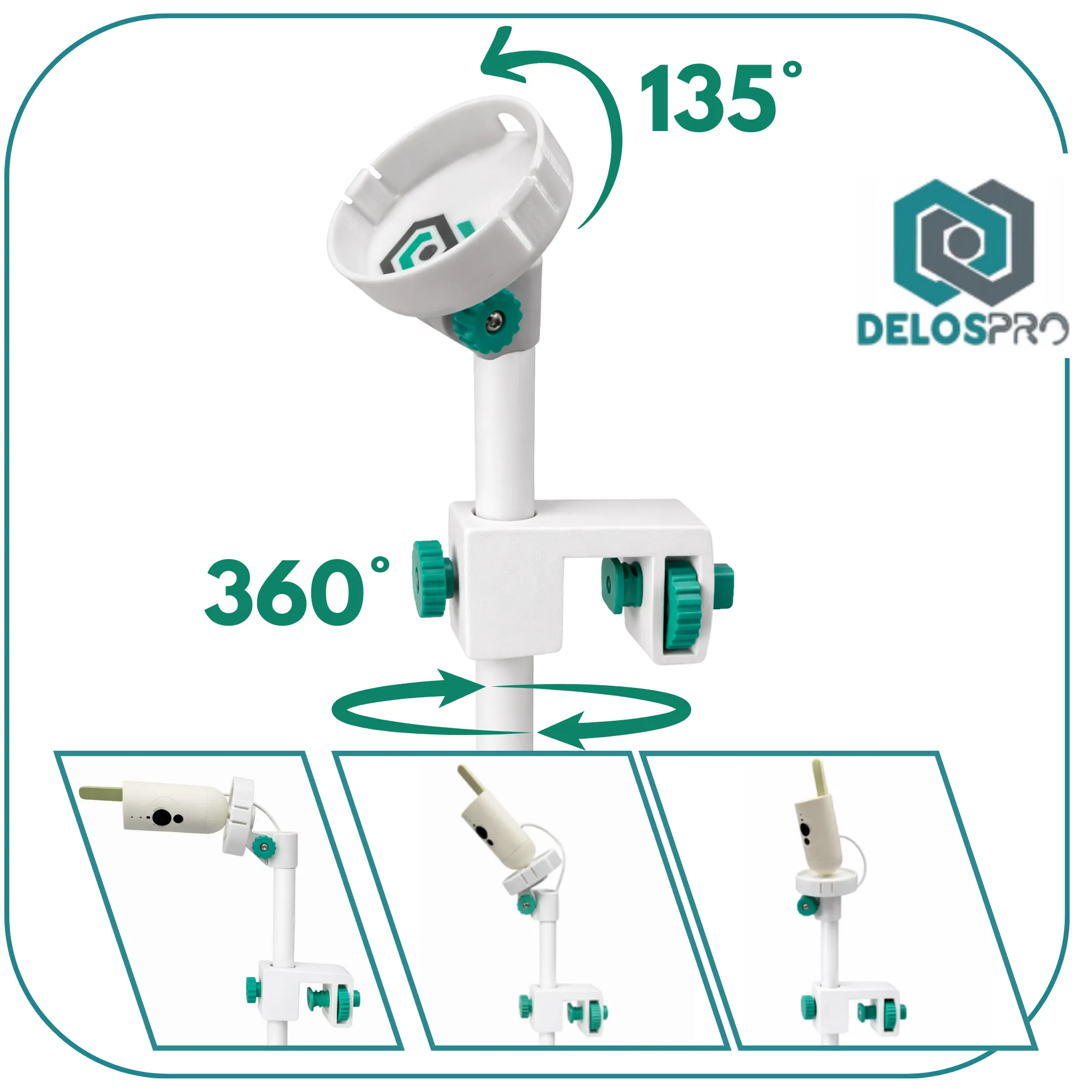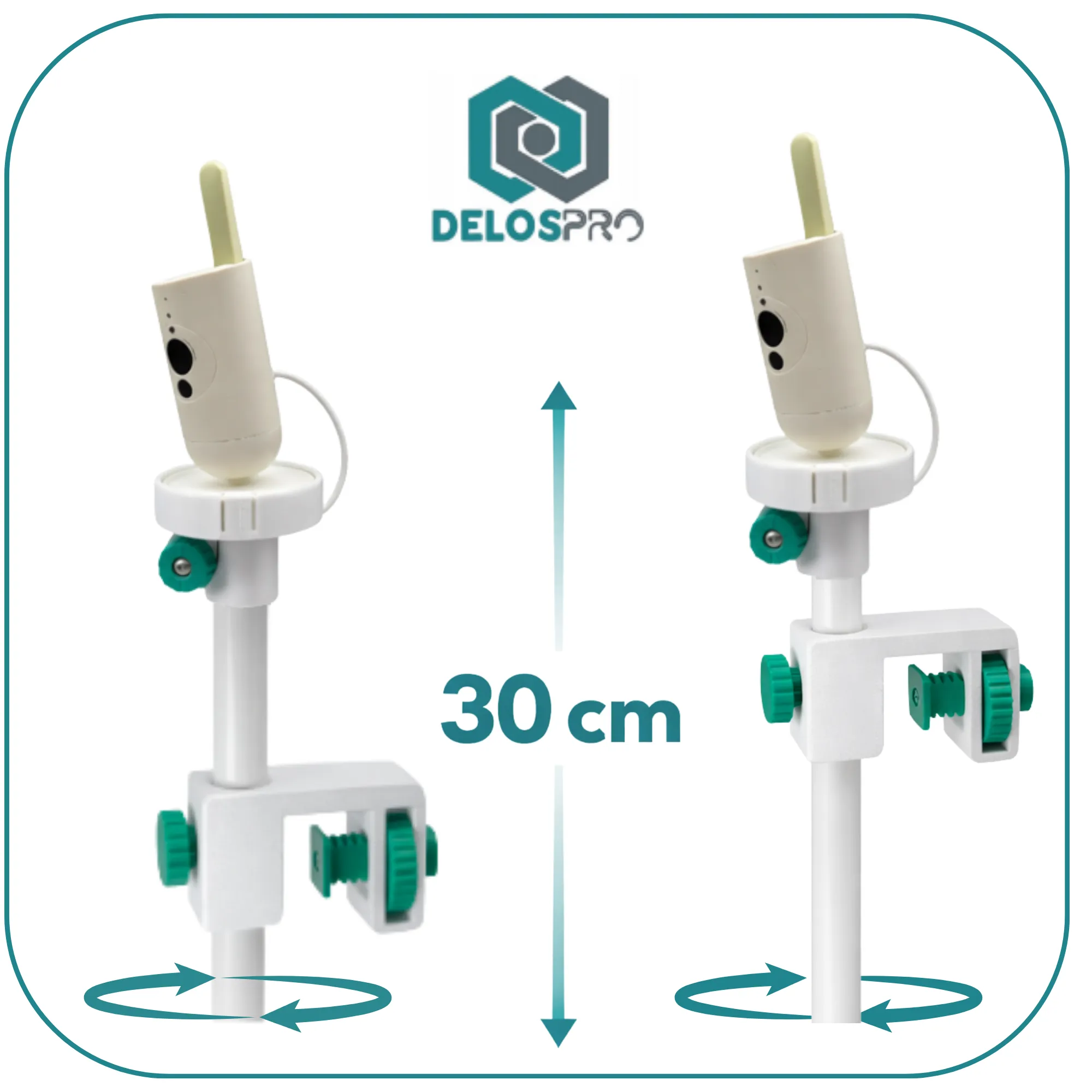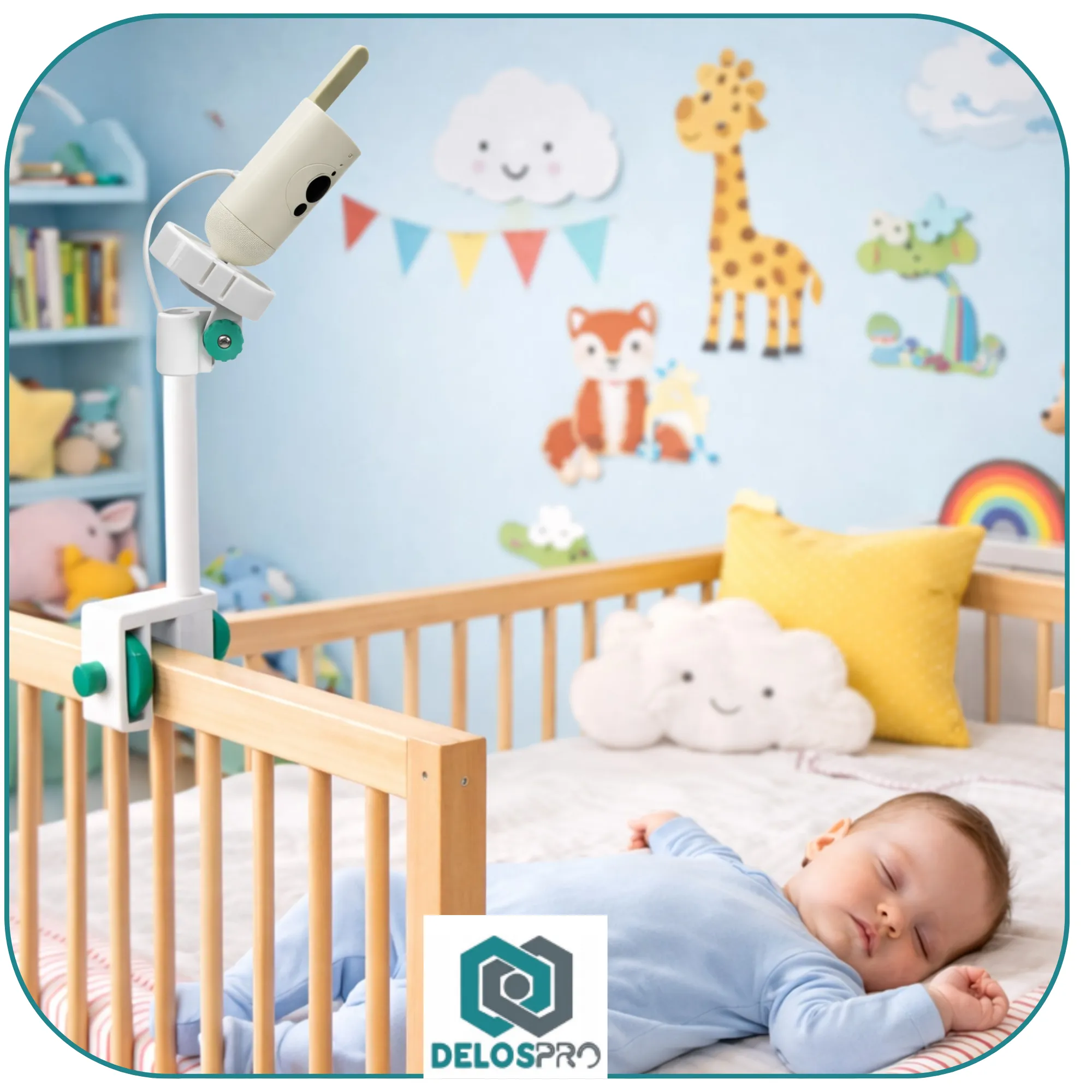Dzięki regulowanej konstrukcji uchwyt pozwala ustawić kamerę dokładnie nad łóżeczkiem, zapewniając pełny widok na dziecko podczas snu i codziennej aktywności. To wygodna alternatywa dla ustawiania kamery na komodzie lub półce, gdzie łatwo o przesunięcie lub ograniczone pole widzenia.