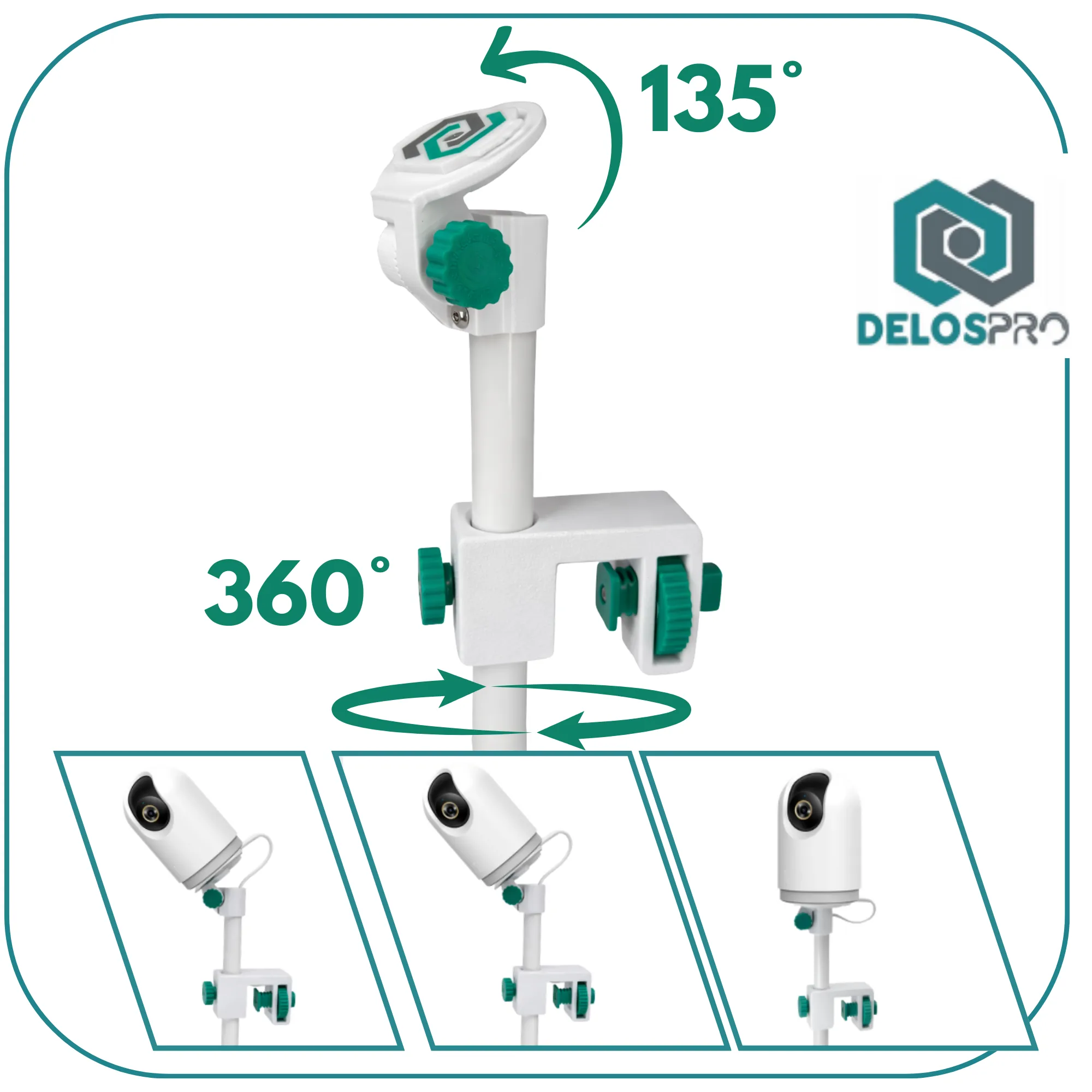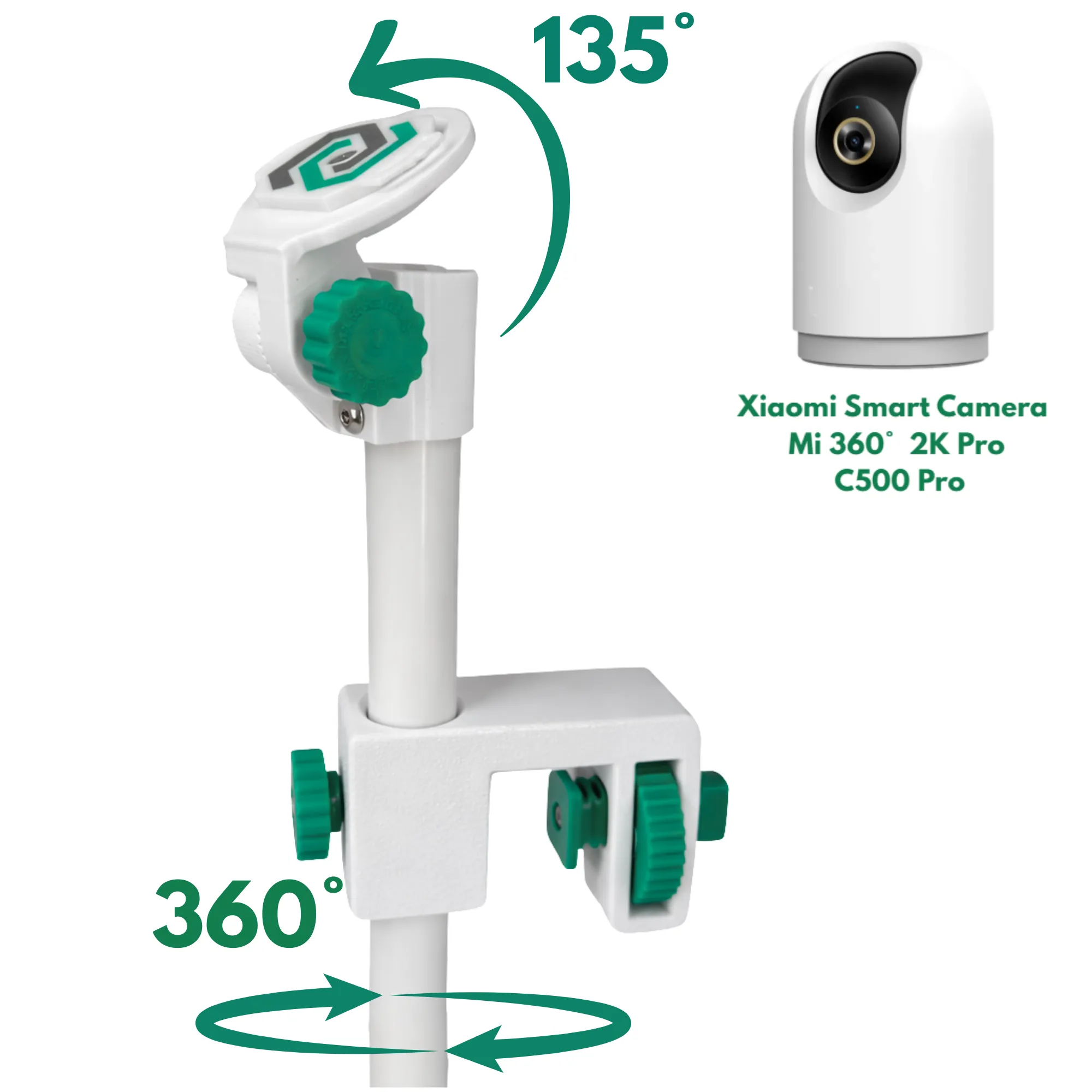 Idealny do pokoju niemowlęcego oraz jako uchwyt do niani elektronicznej Jeśli potrzebny jest solidny uchwyt do Xiaomi Mi Camera 360 2K Pro C500 Pro do łóżeczka, ten model gwarantuje regulację 135° oraz obrót 360°.