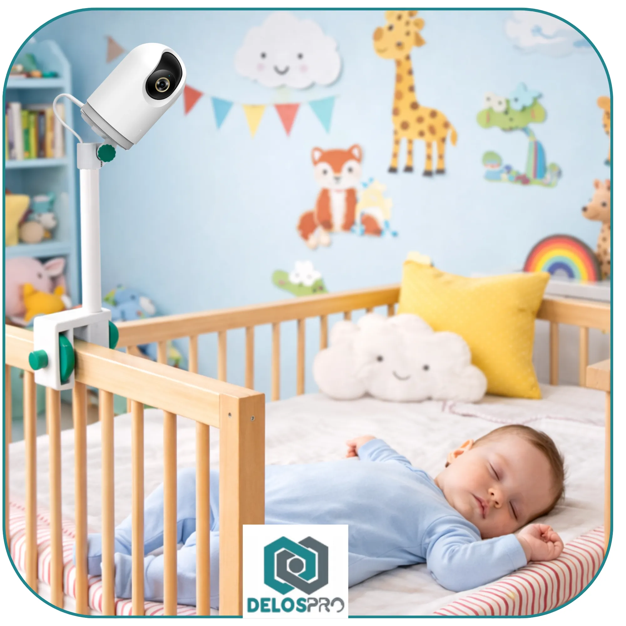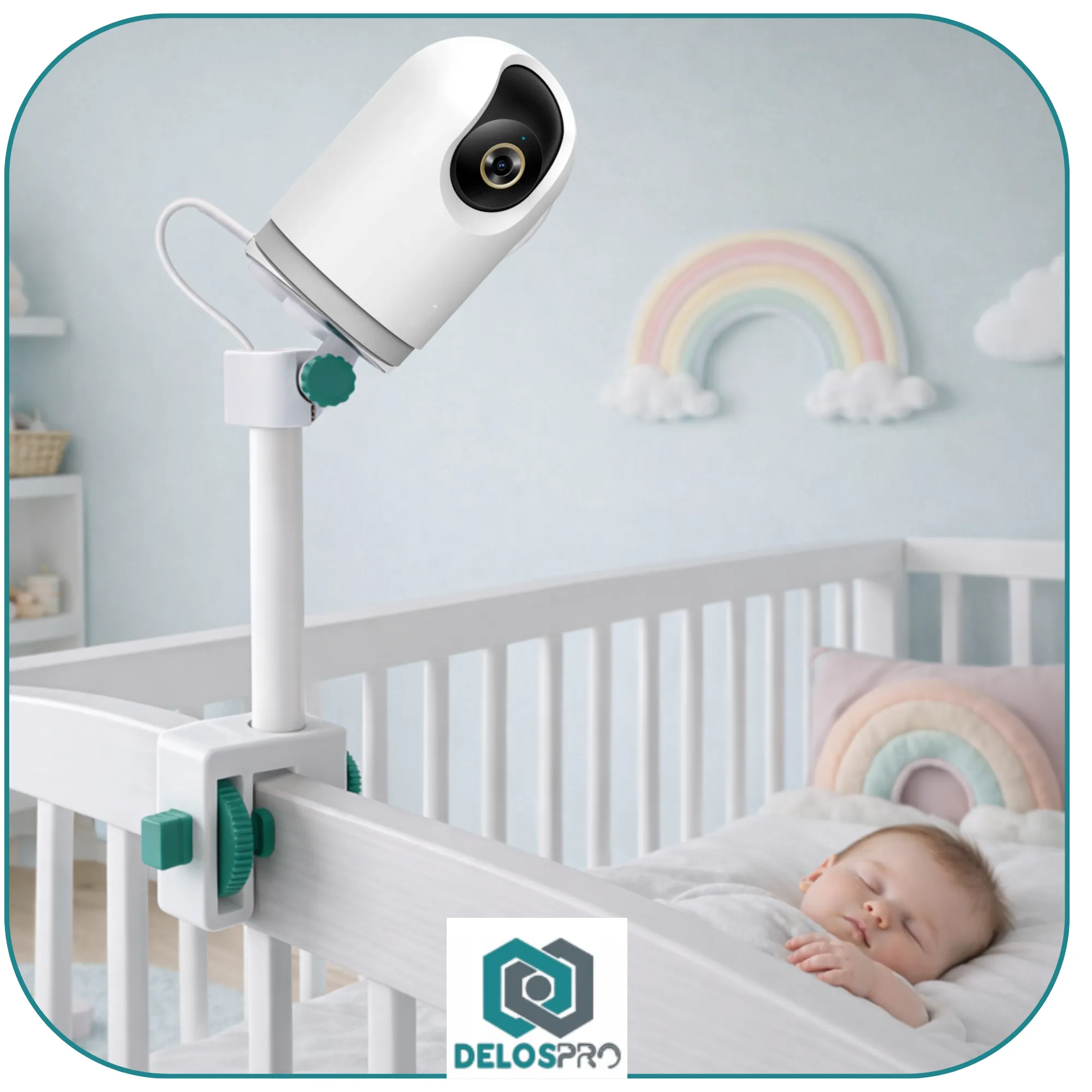Regulacja kąta nachylenia 0–135° oraz obrót 360° pozwalają idealnie dopasować ustawienie kamery do przestrzeni pokoju dziecięcego. Konstrukcja została zaprojektowana z myślą o maksymalnej stabilności i bezpieczeństwie użytkowania.