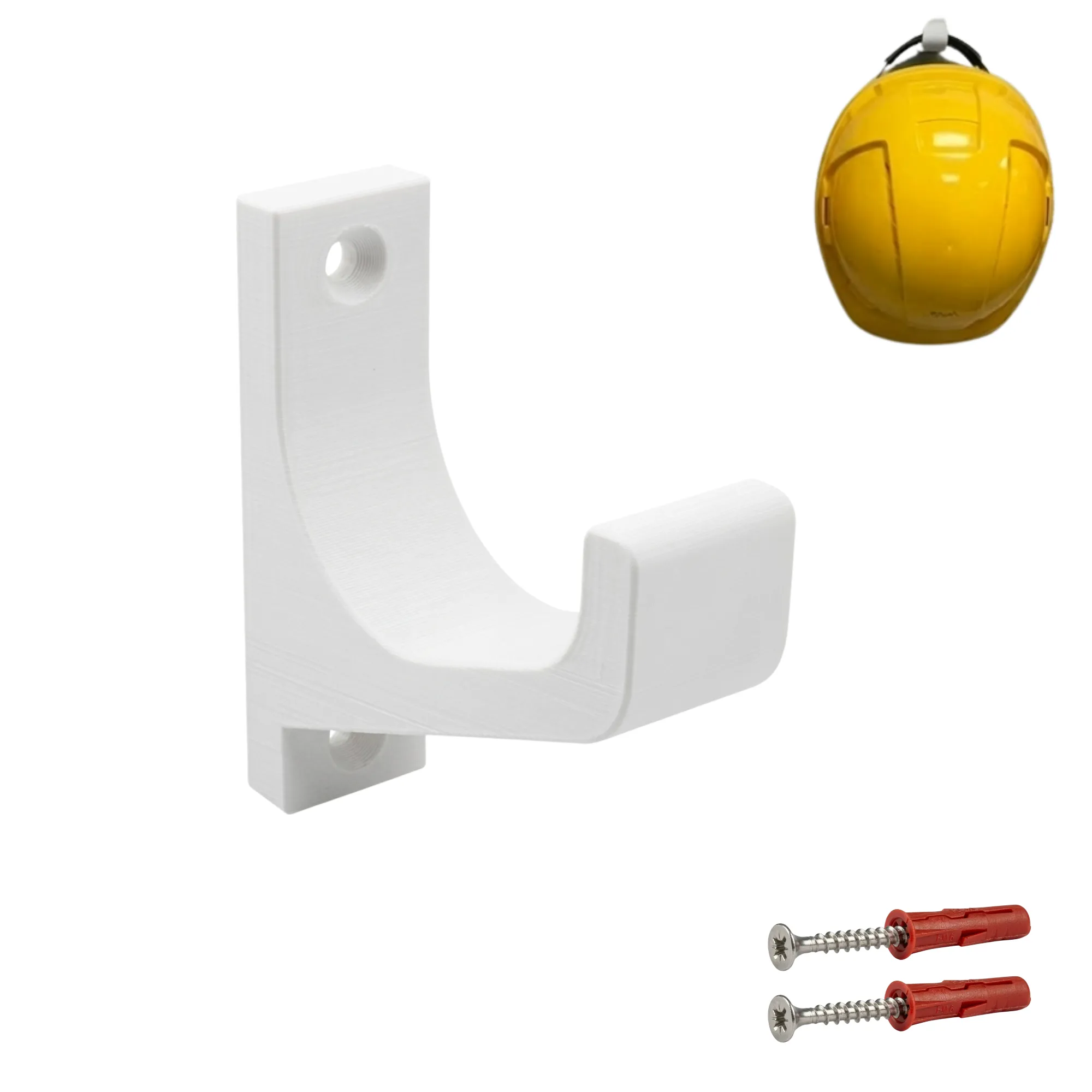 Ten biały uchwyt na kask BHP umożliwia wygodne zawieszenie kasku na ścianie. Dzięki temu kaski robocze są łatwo dostępne dla pracowników, a jednocześnie nie zajmują miejsca na półkach lub w szafkach.