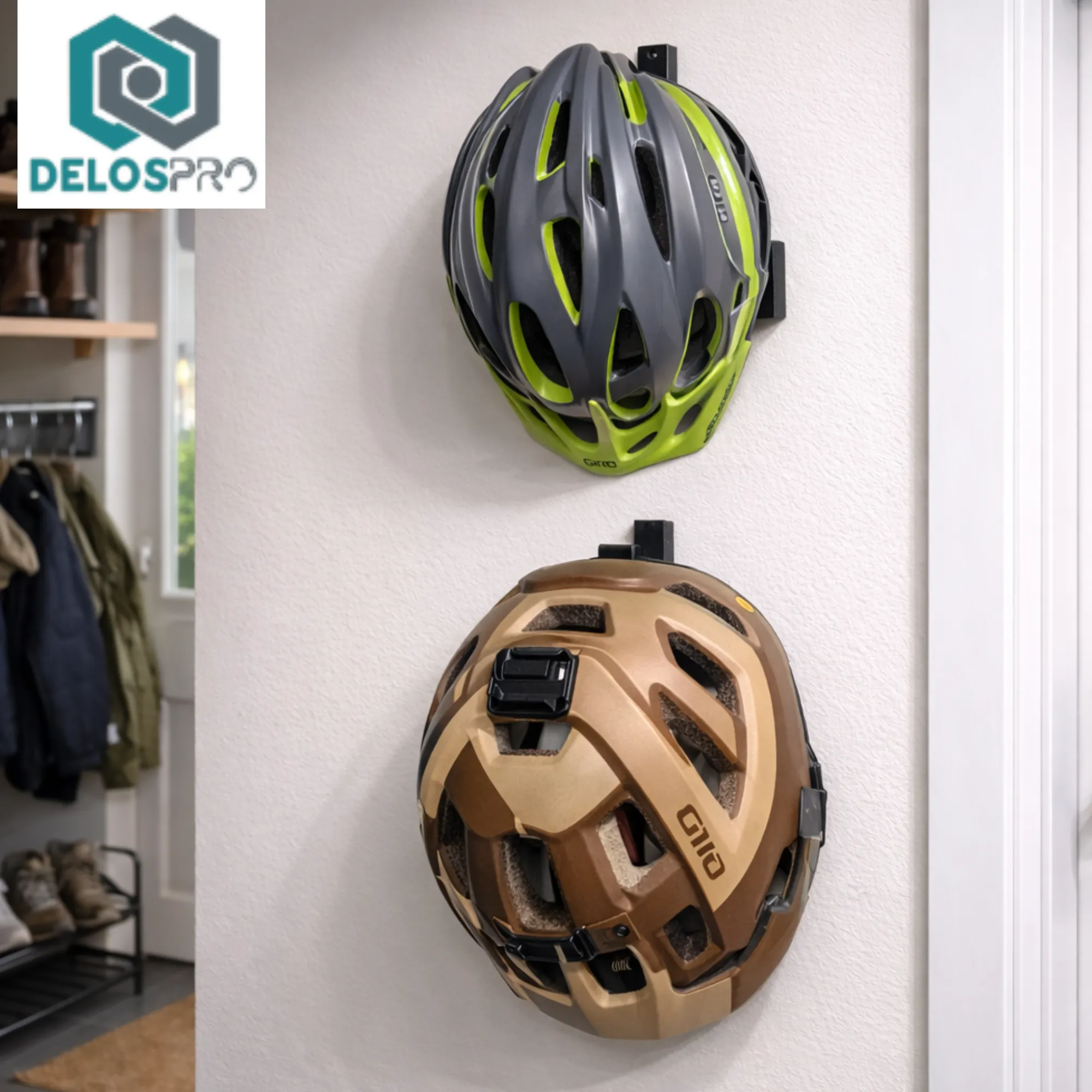 Wieszak na kask rowerowy DELOSPRO to praktyczny uchwyt ścienny, który umożliwia wygodne i bezpieczne przechowywanie kasku w garażu, warsztacie, piwnicy lub przedpokoju. Dzięki niemu kask rowerowy nie leży na podłodze ani na półce, a jednocześnie jest zawsze pod ręką przed wyjazdem na rower.