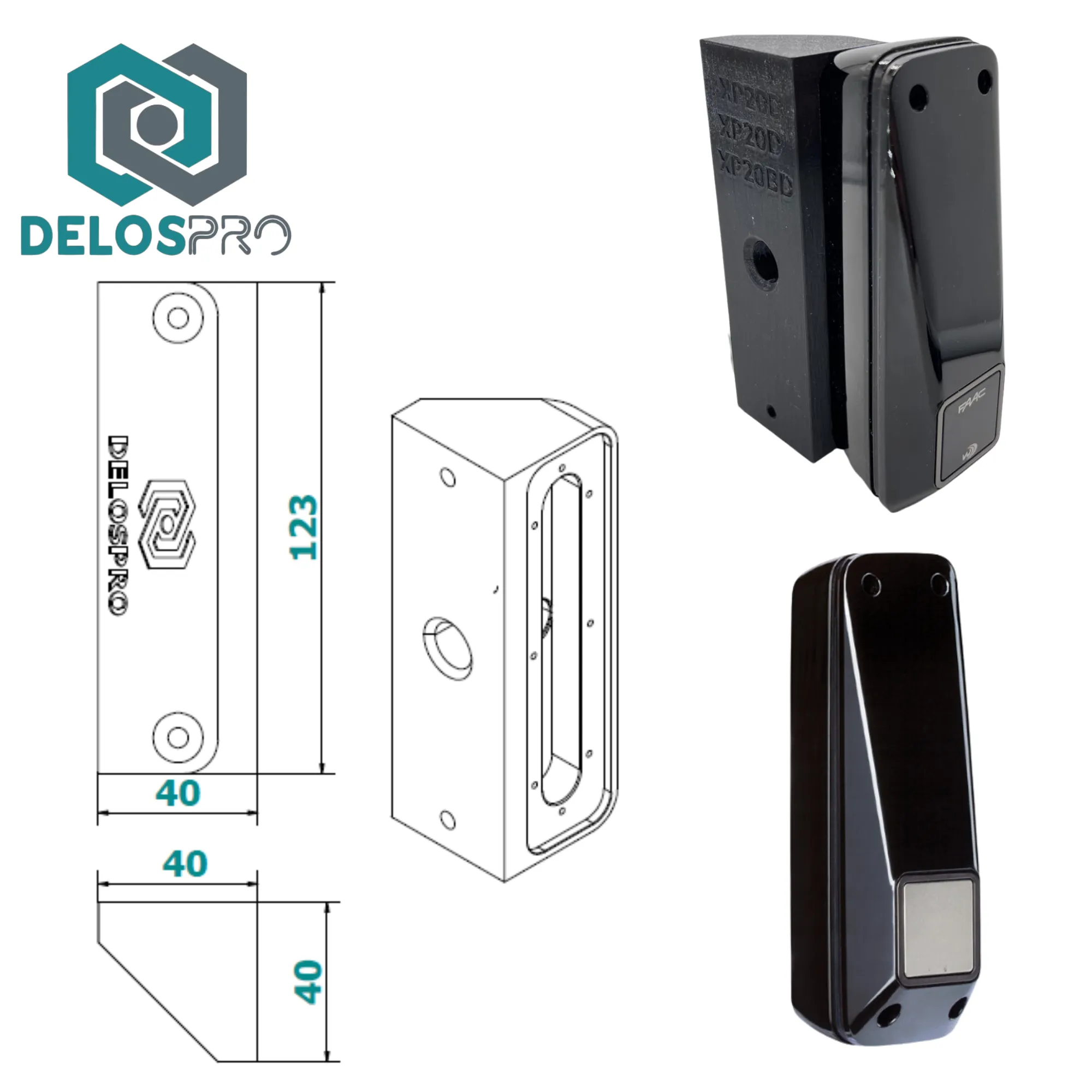 Uchwyt do fotokomórki Faac XP20B wykonany jest z trwałego materiału PETG (druk 3D), odpornego na warunki atmosferyczne, wilgoć oraz promieniowanie UV. Dzięki temu uchwyt narożny do fotokomórki Faac XP20B sprawdza się w instalacjach zewnętrznych automatyki bramowej przez cały rok.