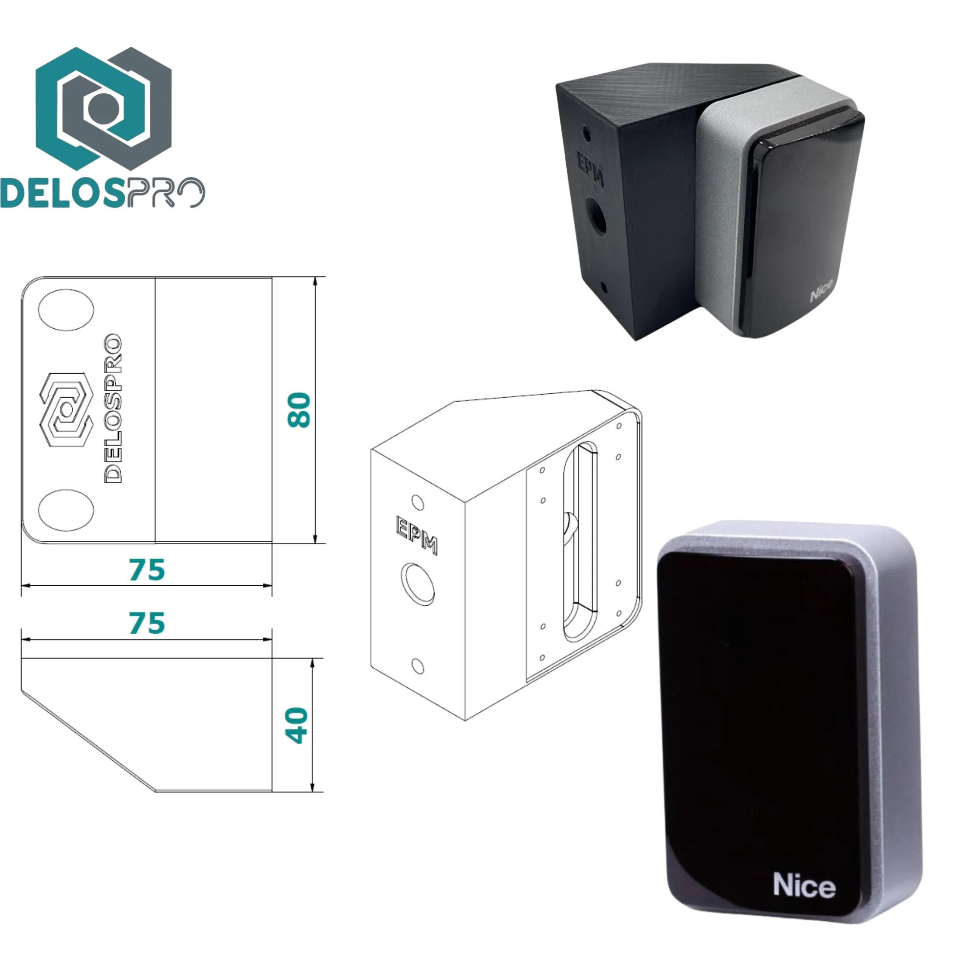 Uchwyt przeznaczony jest do montażu fotokomórki NICE EPM na narożnikach słupków ogrodzeniowych, murkach, elewacjach budynków oraz innych powierzchniach wymagających stabilnej podstawy kątowej. Idealnie sprawdzi się przy instalacjach bram przesuwnych i skrzydłowych, gdzie standardowy montaż frontowy nie jest możliwy.