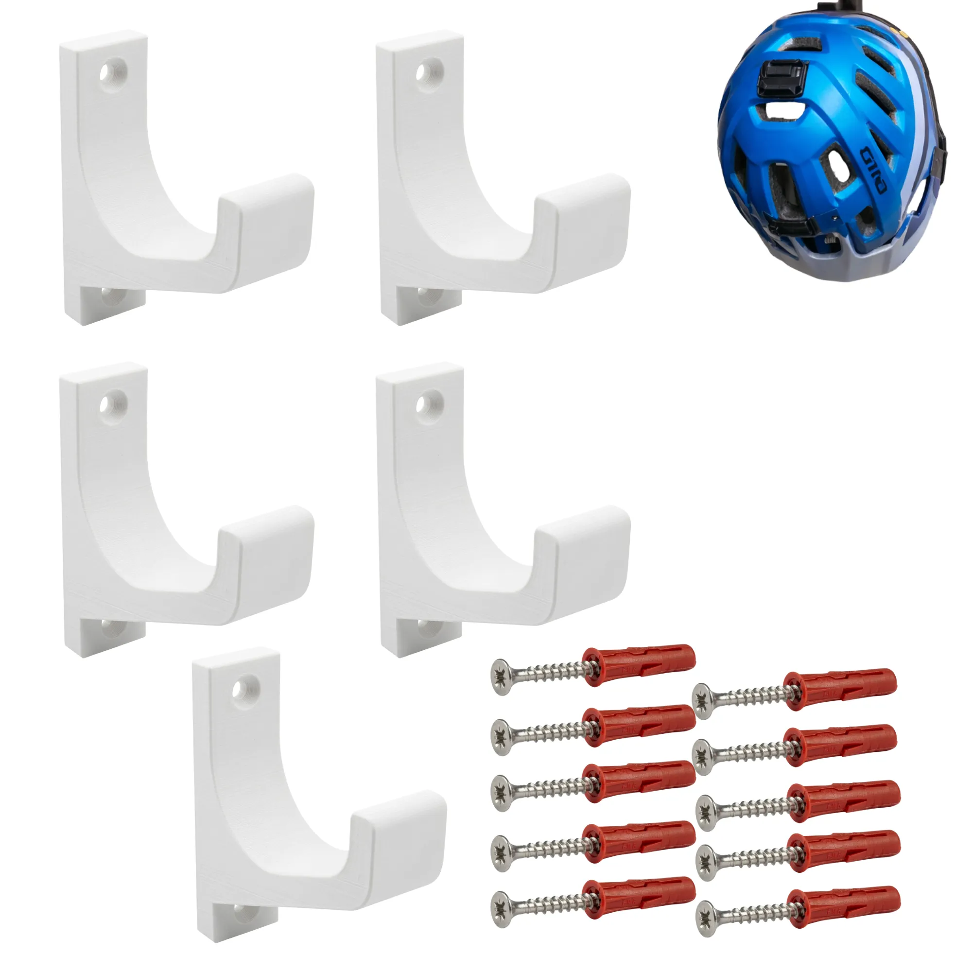 Zestaw zawiera 5 wieszaków na kask rowerowy, dzięki czemu można wygodnie przechowywać kilka kasków w jednym miejscu. To bardzo praktyczne rozwiązanie dla rodzin, warsztatów rowerowych lub osób posiadających więcej niż jeden kask.